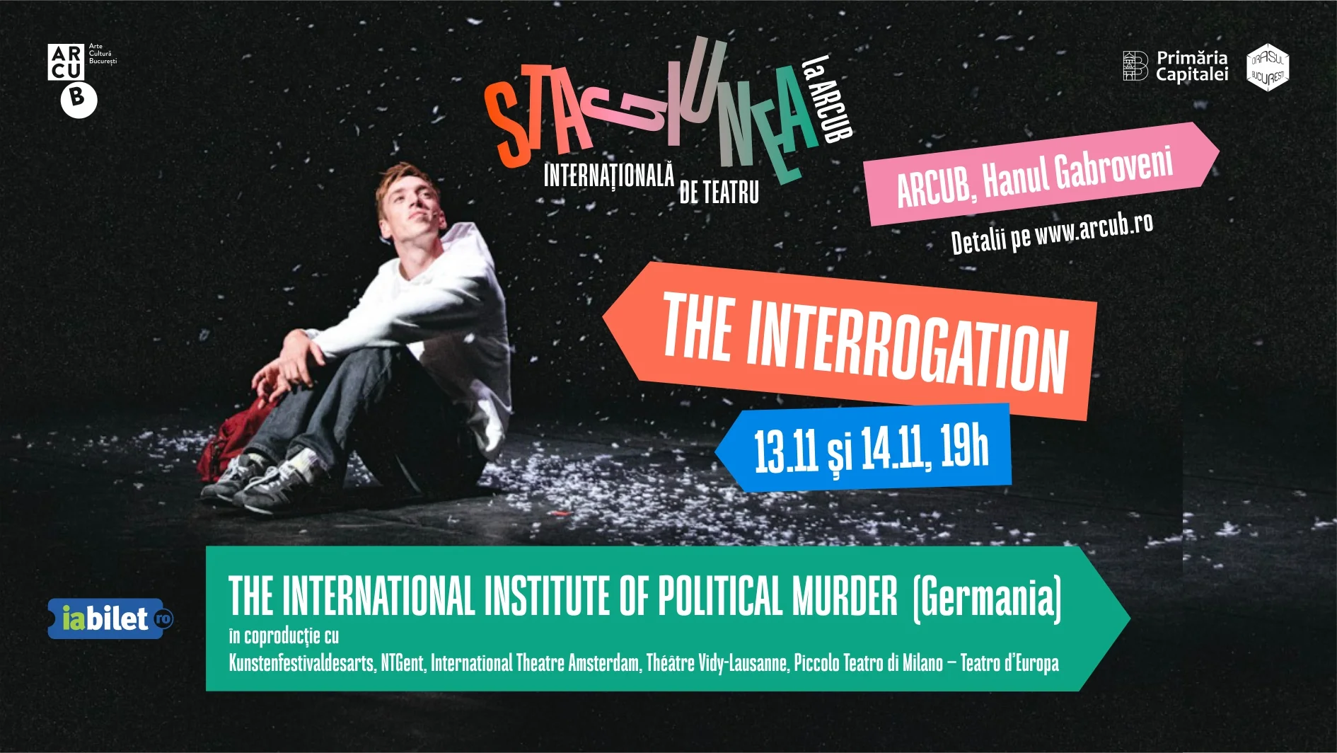 În cadrul Stagiunii Internaționale de Teatru* (curatoriată de Oana Borș și Ioana Anghel), ARCUB prezintă spectacolul The Interrogation (Interogatoriul), în regia lui Milo Rau, în zilele de joi 13 noiembrie și vineri 14 noiembrie, de la ora 19:00. *