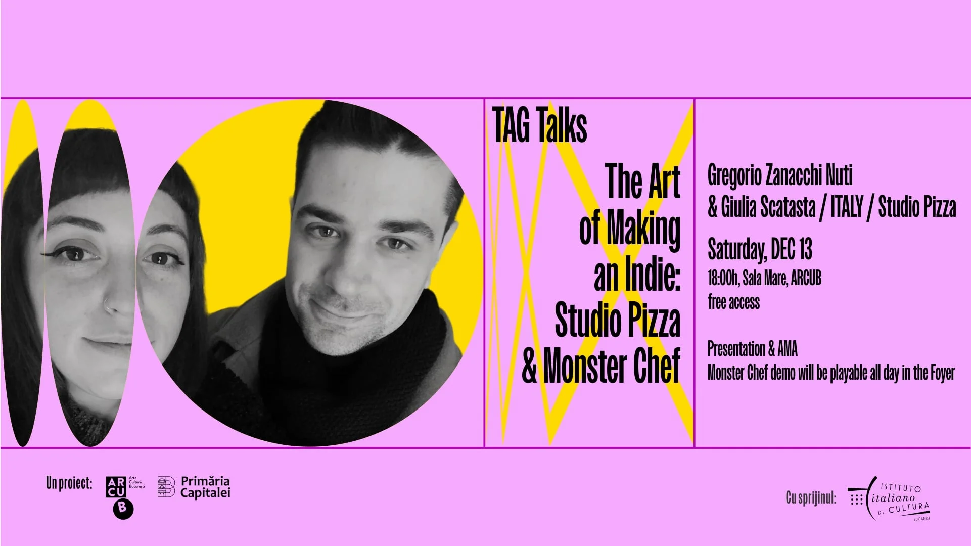 Fondatorii Studio Pizza, creatori ai jocului Monster Chef, povestesc procesul de dezvoltare a unui studio indie într-un peisaj competitiv și în continuă schimbare. Prezentarea urmărește evoluția lor profesională, etapele-cheie în realizarea jocului Monster Chef și modul în care au reușit să-și păstreze viziunea artistică și independența creativă.