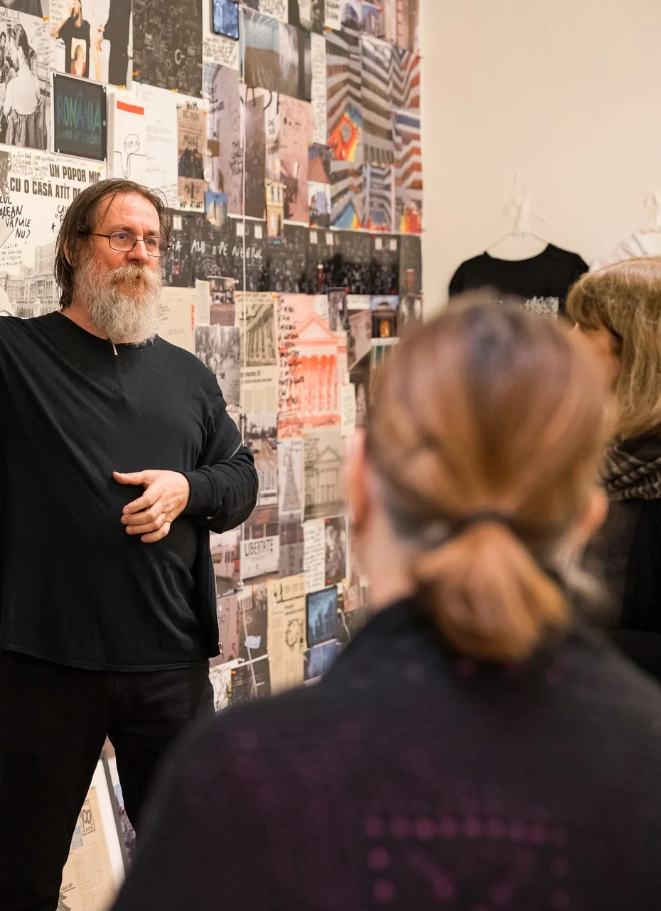 Participanții vor descoperi direct de la cei doi artiști cum a fost construită expoziția, cum se întâlnesc lucrările lor și care sunt ideile, poveștile și contextul din spatele acestui parcurs comun de peste 40 de ani.