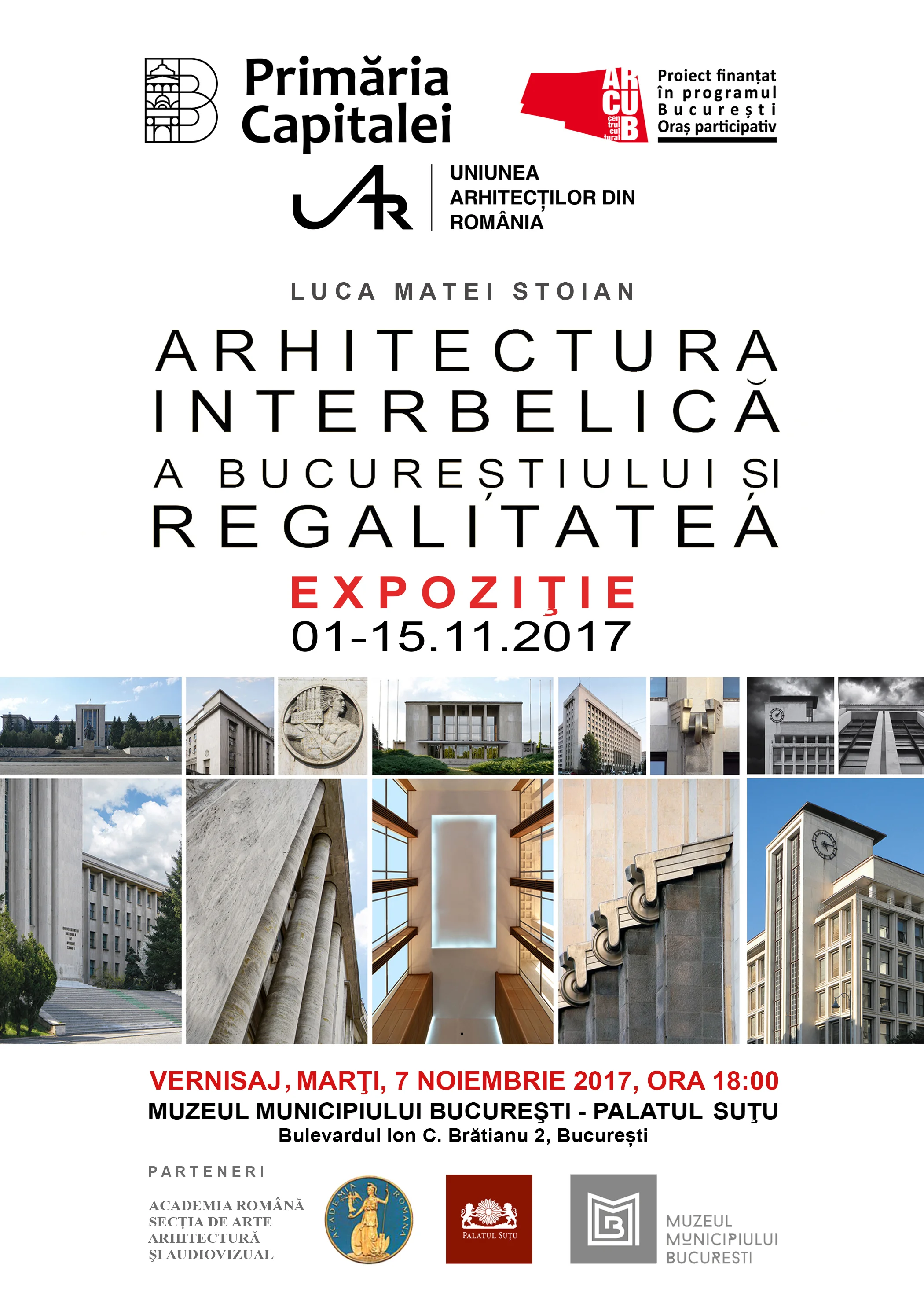 Expoziţia, găzduită de Muzeul Municipiului Bucureşti, în holul central al Palatului Suţu, în perioada 1-15 noiembrie 2017, va cuprinde 30 de panouri de fotografie de arhitectură a unor edificii de arhitectură modernă relevante, lucrări reprezentative pentru arhitectura modernistă a Capitalei din perioada interbelică. Bucureștiul este considerat capitala est - europeană cu cele mai numeroase monumente de arhitectură modernistă, patrimoniu realizat, în mare parte, în perioada interbelică. Vernisarea expoziției și lansarea catalogului vor avea loc marţi, 7 noiembrie 2017, ora 18:00.