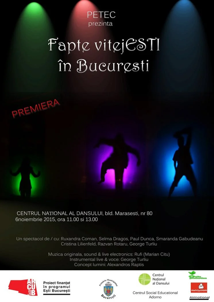 Fapte vitejEŞTI în BUCUREŞTI este un proiect al Asociaţiei pentru Teatru şi Carte (PETEC), finanţat de Centrul de Proiecte Culturale al Municipiului București – ARCUB prin programul Eşti Bucureşti şi susţinut de Centrul National al Dansului. Parteneri: AVmotional, Gulia production, Centrul Cultural-educational Adorno