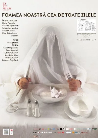 “Public si artisti re-creeaza impreuna, in cadrul unui spectacol-cina, unul dintre proiectele filantropului roman Septimiu Bazilescu Ariston de a vindeca “foamea noastra cea de toate zilele”. Avand la baza cateva insemnari incomplete ale filantropului, gasite in documentare, dar si o serie de interviuri cu oameni care si-au pierdut casele in Sectorul 4 din Bucuresti, Foamea noastra cea de toate zilele creeaza o experienta imersiva care isi propune sa exploreze natura saraciei din Romania, relatia dintre schimbare sociala reala si procesul artistic, conflictul dintre realitate si fictiune si felul in care il consumam in timpul participarii la un spectacol.” Peca Stefan