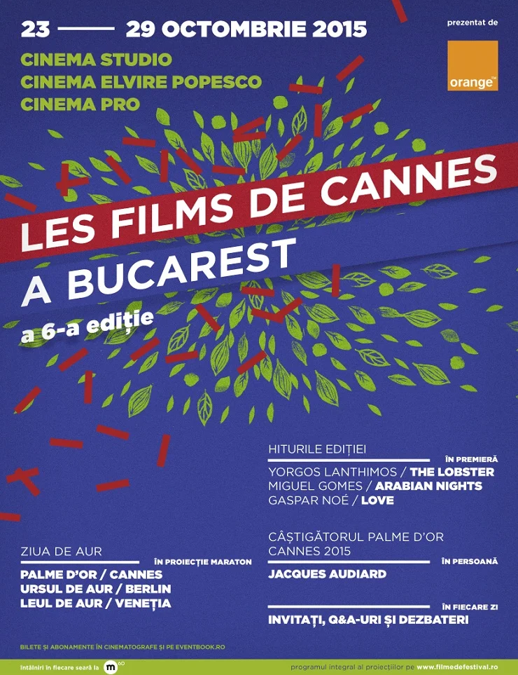 Cea de-a șasea ediție a Les Films de Cannes à Bucaresta avut loc între 23 și 29 octombrie (zile urmate de alte 3 zile cu proiecții speciale sau suplimentare) la Cinema Studio, Cinema Elvire Popesco și CinemaPRO. Les Films de Cannes à Bucarest a fost inițiat în 2010 de regizorul Cristian Mungiu, cu sprijinul Delegatului General al Festivalului de la Cannes,Thierry Frémaux. Inițiativa a generat un trend, festivalul extinzându-se în 2014 la Buenos Aires, sub denumirea Semana de Cine del Festival de Cannes. Plănuim să ducem filmele peste tot în lume. Cristian Mungiu organizează deja un festival în București. Nu e atât de important pentru noi, cât este pentru filme, declara Thierry Frémaux anul trecut, pentru „Variety”.