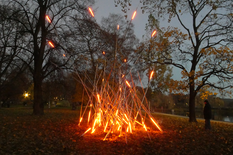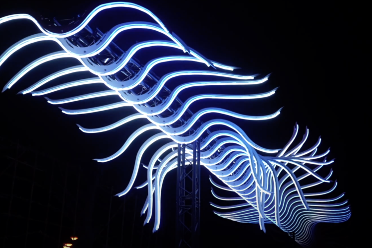 - Bird Passing By (Luminariste, Franța), o lucrare poetică ce surprinde fragilitatea și libertatea mișcării, transformând zborul într-o metaforă vizuală a luminii;