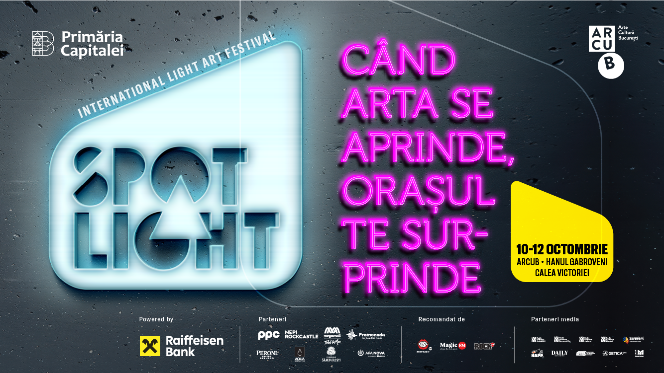 Între 10 și 12 octombrie 2025, Capitala devine scena unuia dintre cele mai spectaculoase festivaluri de artă vizuală – Spotlight – International Light Art Festival, ajuns la cea de-a noua ediție. Organizat de Primăria Capitalei, prin ARCUB – Centrul Cultural al Municipiului București, festivalul aduce anual peste 300.000 de vizitatori și aliniază Bucureștiul circuitului internațional al marilor festivaluri ale luminii.