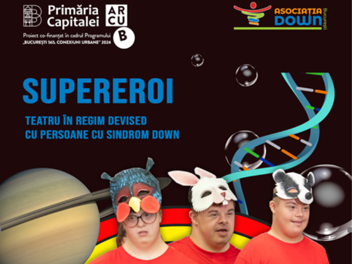 Proiectul „Supereroi” este o noua producție de teatru muzical în regim devised cu persoane cu sindrom Down. În cadrul proiectului, 21 de persoane cu sindrom Down, beneficiari ai asociației solicitante, vor intra în contact cu lumea teatrului și vor participa la crearea unui spectacol muzical. Povestea îi va purta pe cei 21 de protagoniști în lumi fantastice, care îi vor transforma în supereroi.