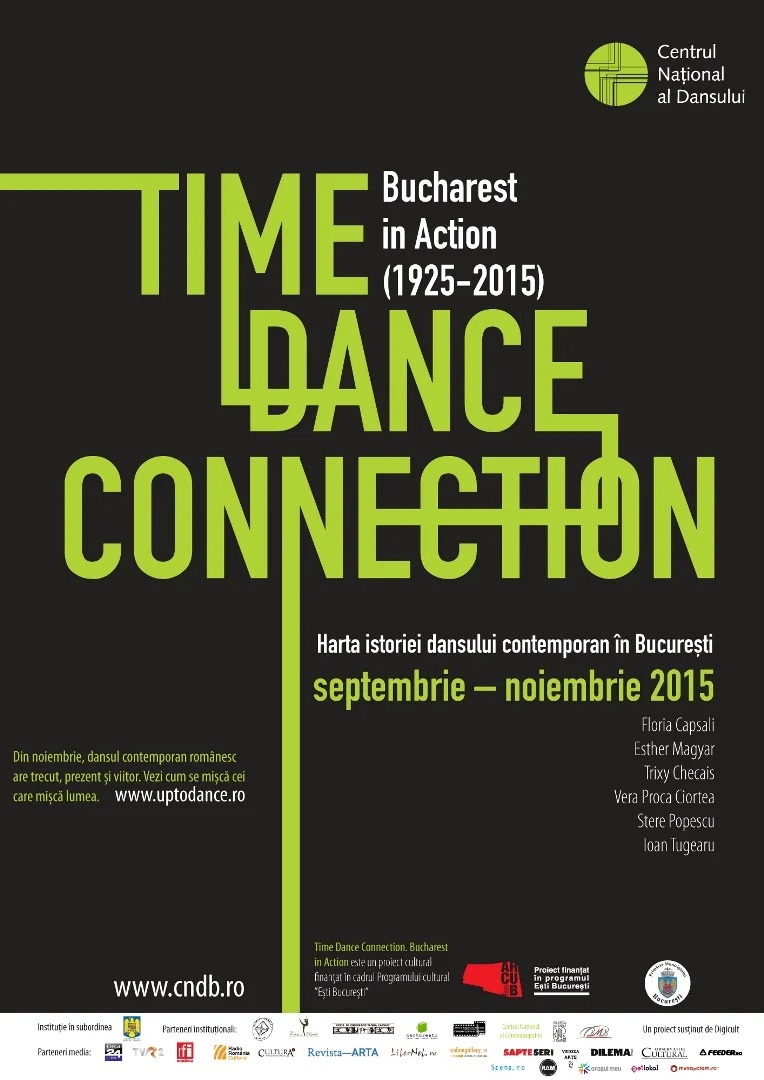 Centrul Național al Dansului București prezintă Time Dance Connection. Bucharest in Action (1925-2015) - Harta istoriei dansului contemporan în București, un proiect de recuperare și actualizare a unei istorii invizibile până acum, concretizat prin șase evenimente desfășurate în perioada 24 septembrie – 29 noiembrie, în mai multe spații din București.