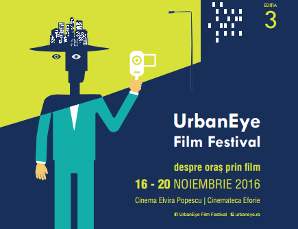 Cea de treia ediție a UrbanEye Film Festival va avea loc în București, între 16 – 20 noiembrie 2016, la Cinema Elvira Popescu și Cinemateca Eforie. În premieră pentru țara noastră, festivalul va aduce pe ecrane documentare premiate, care abordează în moduri diferite teme legate de mediul construit, de modelarea acestuia și de oamenii care îl locuiesc. Deși produse în alte părți ale lumii, filmele proiectate sunt relevante și pentru contextul actual din România, programul festivalului incluzând discuții și dezbateri cu profesioniști din discipline diferite, care vor face legătura dintre subiecte și contextul local. Astfel, UrbanEye Film Festival deschide, din nou, discuția despre oraș.